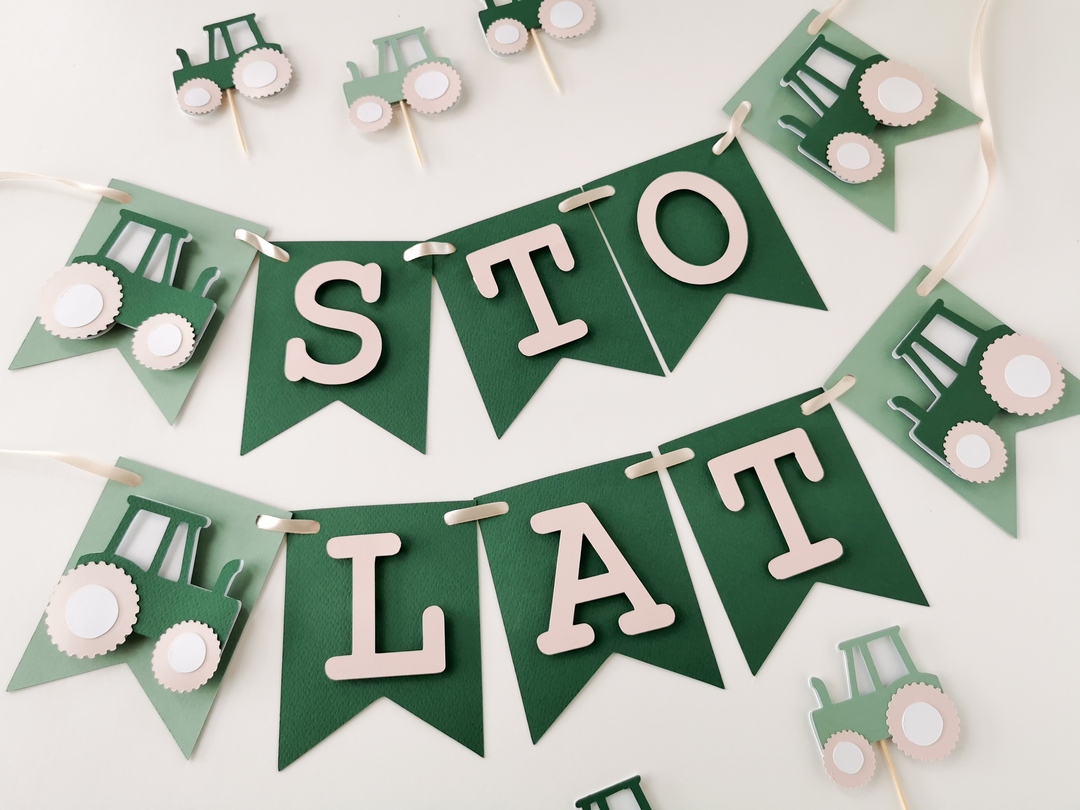 Piękne pikery do dekoracji babeczek/muffinek, idealne uzupełnienie przyjęć z motywem przewodnim traktora. Dzięki nim każda, nawet najzwyklejsza przekąska będzie pięknie prezentować się na stole. Możesz wykorzystać je również na tort/ciasto urodzinowe.