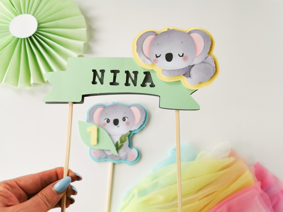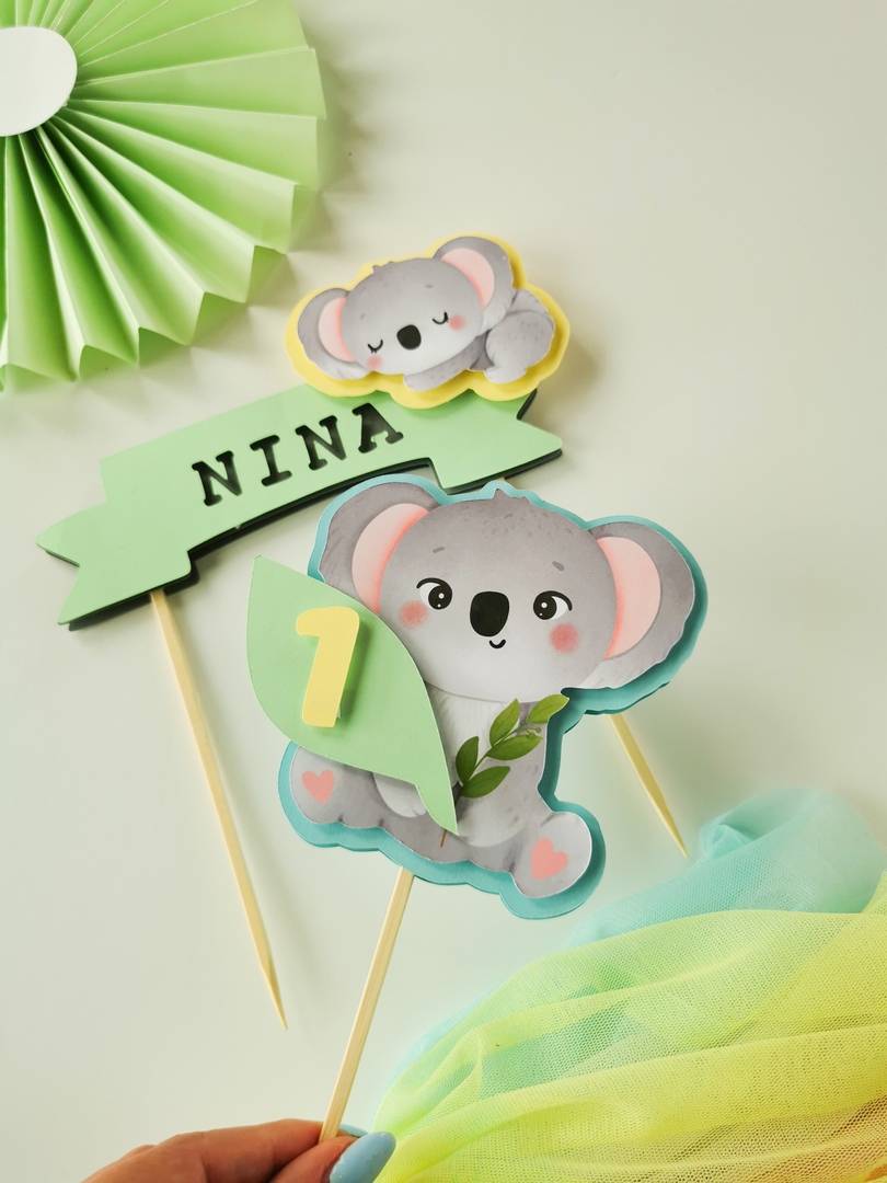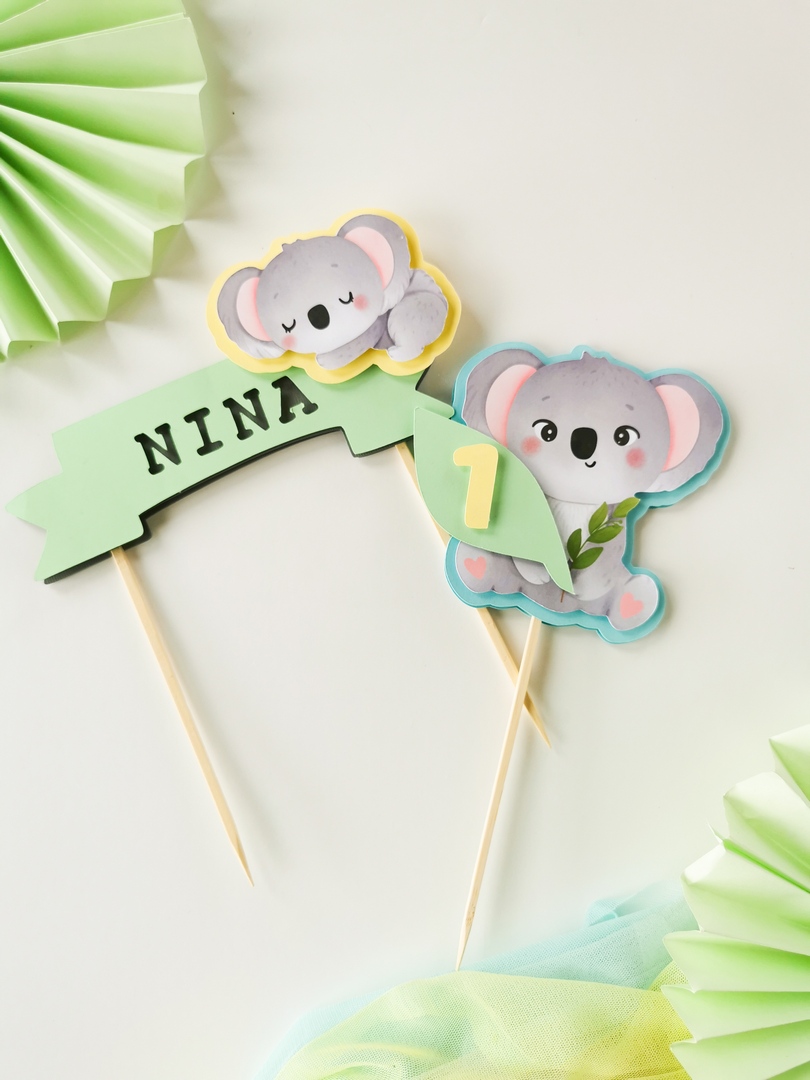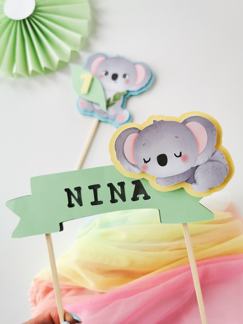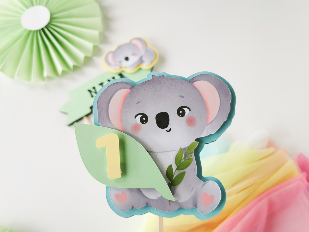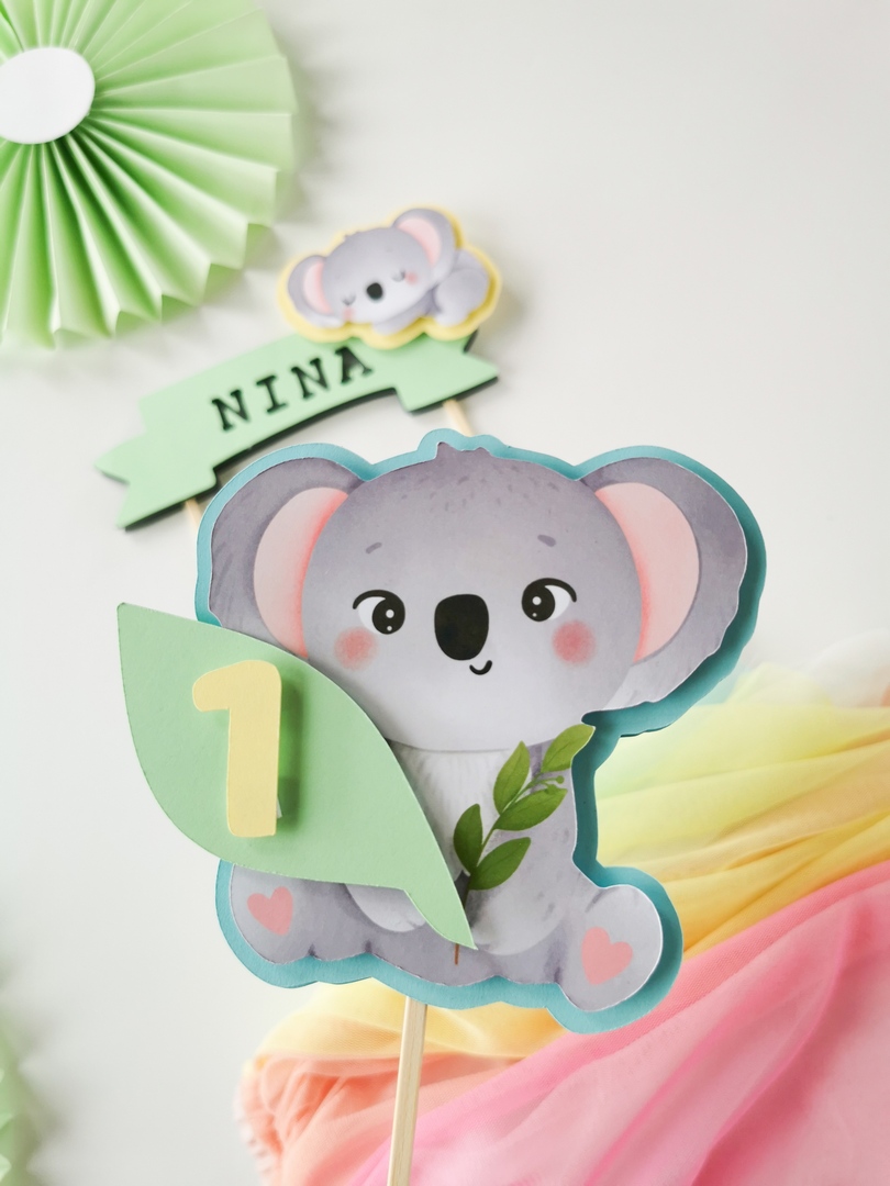 Personalizowany topper na tort z motywem koali to wyjątkowa dekoracja urodzinowa, która wprowadza magiczną atmosferę na przyjęcie Twojego dziecka. Ręcznie wykonany z możliwością personalizacji – imienia oraz liczby – wieku jubilata.
