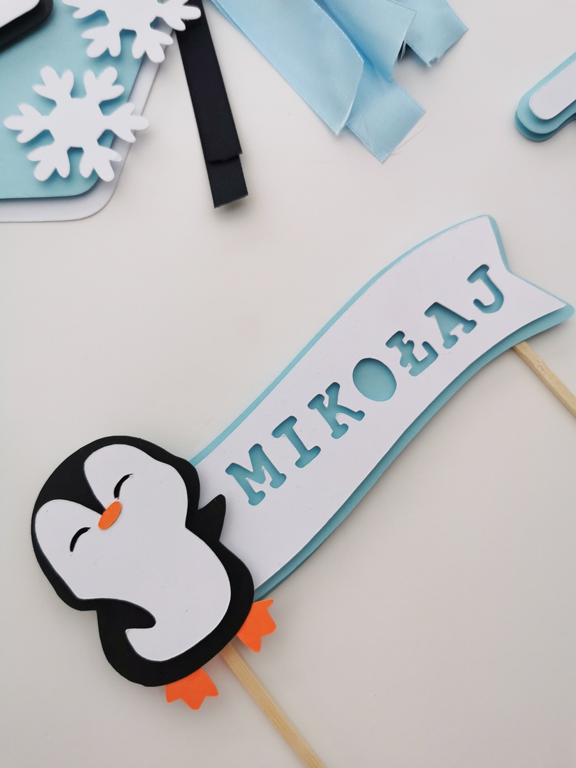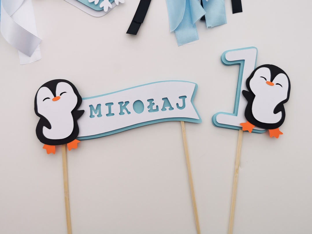Personalizowany topper na tort z motywem pingwinków to wyjątkowa dekoracja urodzinowa, która wprowadza magiczną atmosferę na przyjęcie Twojego dziecka. Ręcznie wykonany z możliwością personalizacji – imienia oraz liczby – wieku jubilata.